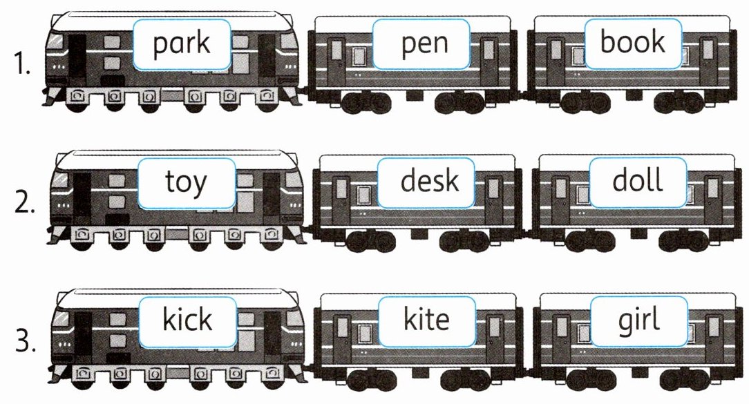 Ⅰ. Listen and circle. 哪节车厢的单词首字母发音与其他车厢的不同呢?听一听,圈一圈。