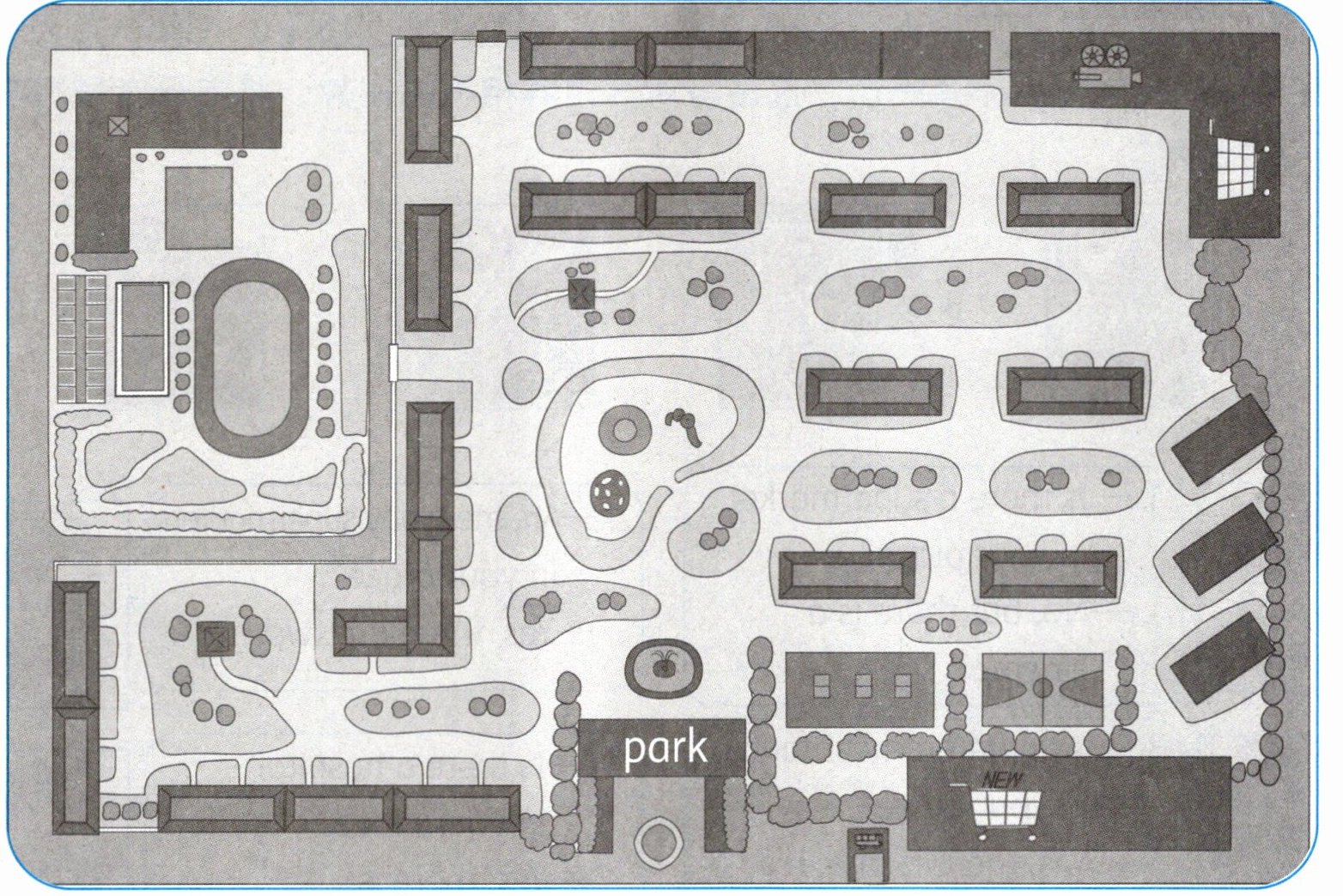 Ⅴ. Read and tick or cross. 下面是 Maisy 社区的规划图。读一读,判断描述与图片是否相符,相符的画“√”,不相符的画“×”。