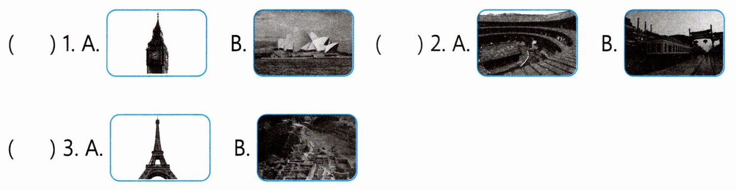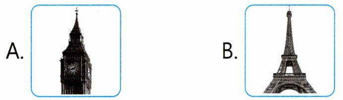 ) 1. —What’s it like? —It’s a clock tower. It’s very tall.A. B.