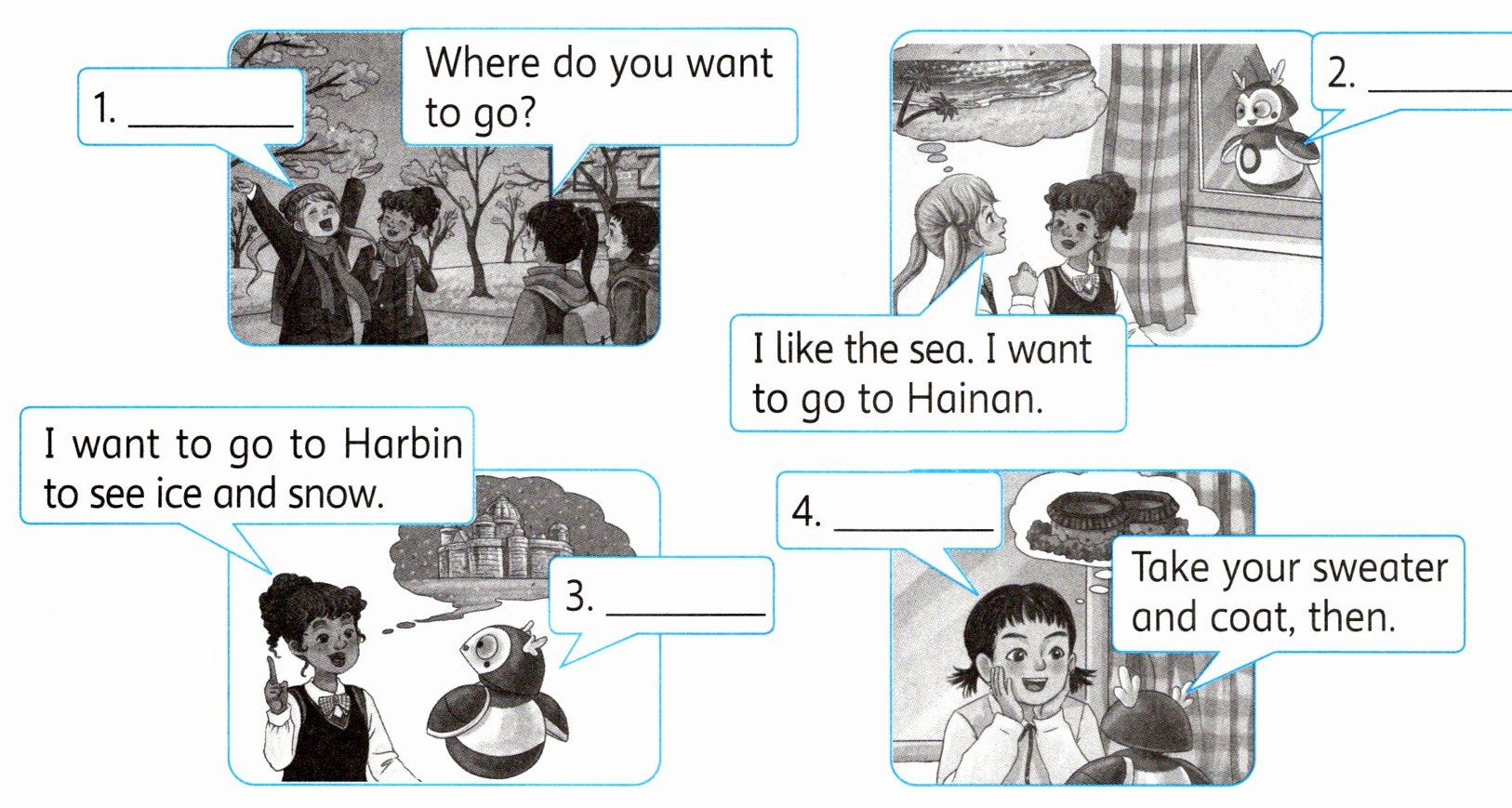 Ⅳ. Read and choose. Maisy 和朋友们在交流寒假旅行计划。读一读,选择适当的句子补全对话,将字母序号写在横线上。