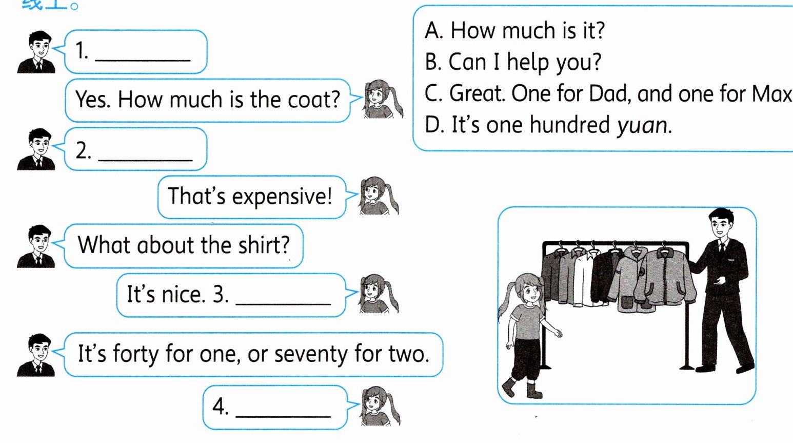 Ⅳ. Read and choose. 读一读,选出正确的句子补全对话,将字母序号写在横线上。