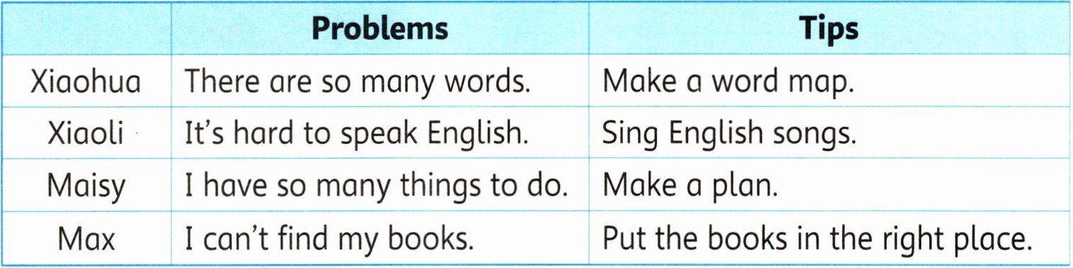 Ⅱ. Read, choose and write. 你可以帮助 Xiaohua 解决他在学习上遇到的问题吗?读一读,从方框中选出适当的单词或短语补全句子,将其写在横线上。