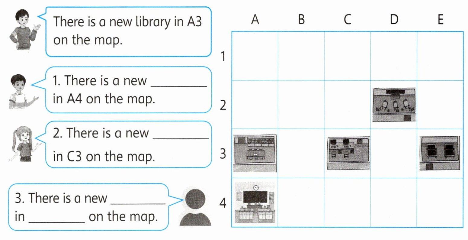 Ⅵ. Look, write and say. Xiaohua 和朋友们正在向大家介绍校园里的场所。看一看,模仿范例,补全介绍,并说一说。