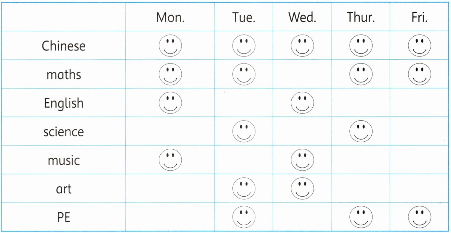 ) 3. Xiaohua has science on Tuesday and Thursday.(