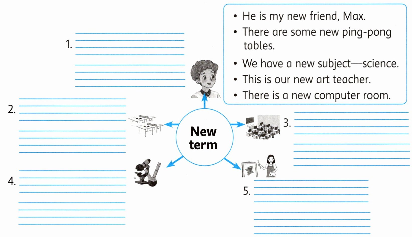 Ⅱ. Read and write. 一年级的同学对新学校感到陌生,请你向他们介绍一下吧。读一读,补全句子。