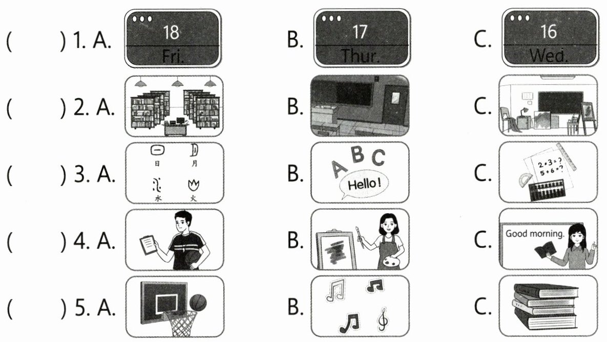 Ⅰ. Listen and choose. 听一听,选出与录音内容相符的图片,将字母序号写在括号里。(10 分)