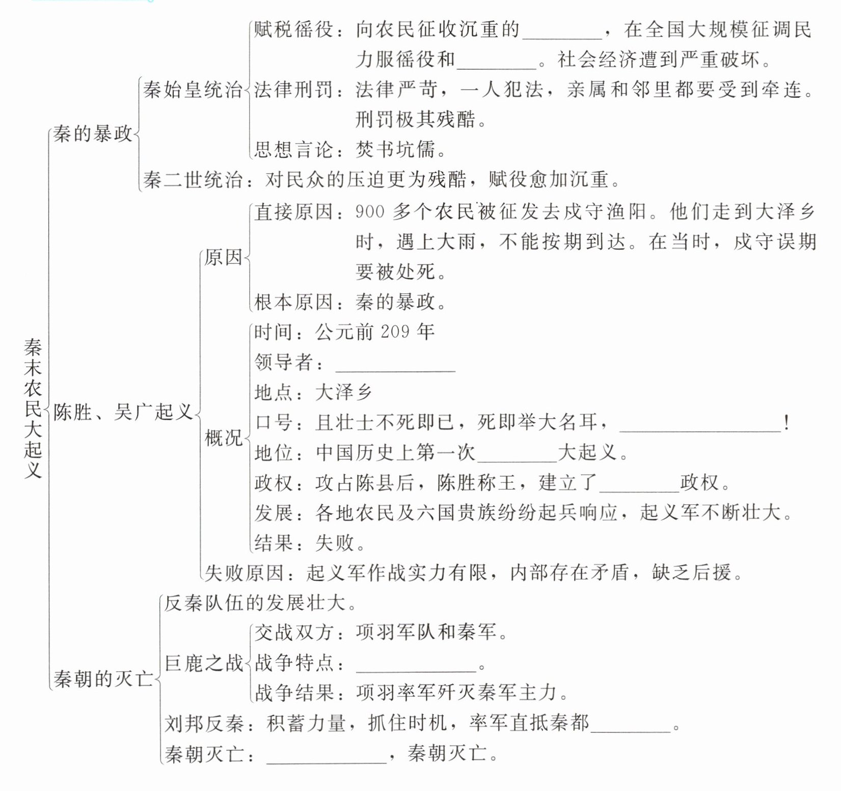 赋税 兵役 陈胜和吴广 王侯将相宁有种乎 农民 张楚 以少胜多 咸阳 公元前207年