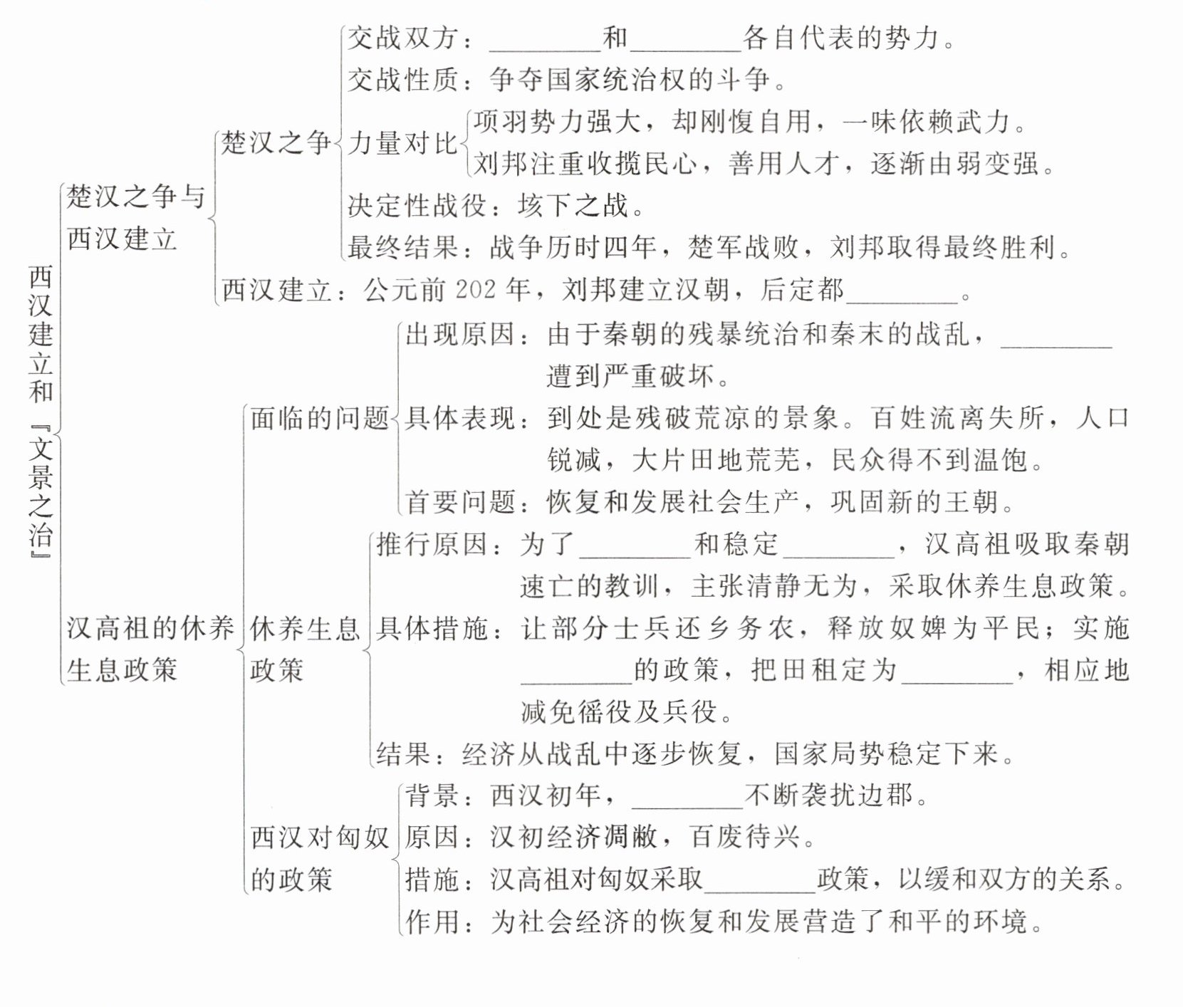 项羽 刘邦 长安 社会生产 巩固政权 社会局势 轻徭薄赋 十五税一 匈奴 和亲 以农为本 三十税一 勤俭治国 长安城 边境贸易
