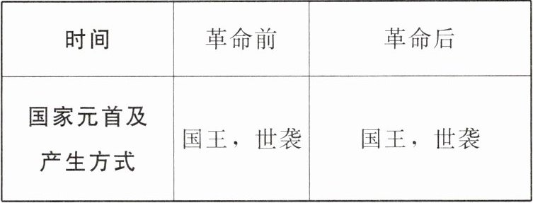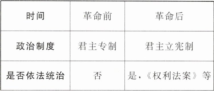 6. 下表是对 17 世纪某国资产阶级革命前后政治体制的比较,据此判断该国是(