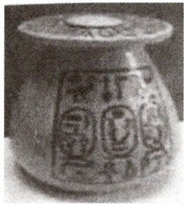 6. 下图的石瓶是古埃及阿蒙荷特普三世王后提伊的物品,用于盛放化妆品或油膏,瓶身上有王后和国王的名字。瓶身上的文字应是(