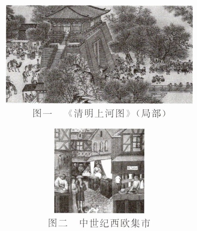 (1)图一、图二两幅中外美术作品生动地展现了人类社会哪一历史阶段城市发展的风貌?突出反映了古代城市的发展与哪些经济活动密切相关?