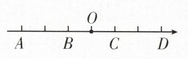 (3)若点 $A$ 和点 $D$ 表示的两个数互为相反数,请在数轴上表示出原点的位置,用点 $O$ 来表示。
