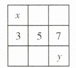 6. (2024·贵阳模拟) 把1~9这9个数填入$3×3$方格中,使每行、每列、每条对角线上的三个数之和都相等,这样便构成了一个三阶幻方,它源于我国古代的洛书。若一个仅可以看到部分数值的三阶幻方如图所示,则其中$x + y$的值为( )。