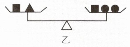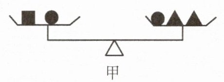 5. (2024·贵州中考)小红学习了等式的性质后,在甲、乙两台天平的左右两边分别放入“■”“●”“▲”三种物体,如图所示,天平都保持平衡。若设“■”与“●”的质量分别为$x$,$y$,则下列关系式正确的是( )。