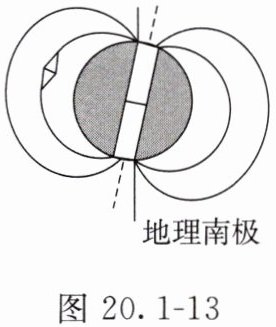 ,这个发现比西方早了400多年。请在图20.1 - 13中,标出地磁场的S极、磁感线方向,并涂黑小磁针的N极。