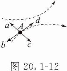 5. 如图20.1 - 12所示的两条曲线是两条磁感线,若将一枚小磁针放在A点,小磁针静止时S极将指向图中所示的(