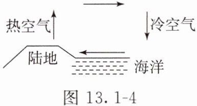 4. 在沿海地区,夏日里常常出现“海陆风”,当出现如图13.1-4所示风向时,通常(