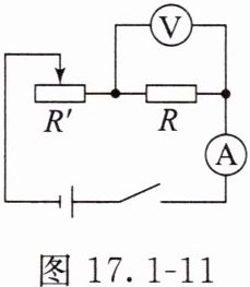 1. 在探究电压一定时电流与电阻的关系的实验中,选择了 5Ω、10Ω、15Ω、20Ω 四个定值电阻进行实验,实验电路如图 17.1 - 11 所示。下列说法错误的是(