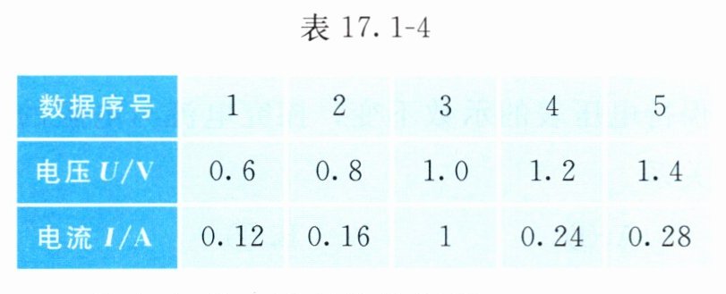 (6)实验后,小明发现另一组的同学画出了如图 17.1 - 17 乙所示的图像,所反映的规律与自己所在组的不同,该组同学实验中可能存在的问题是