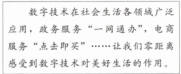 数字技术在社会生活各领域广泛应用,政务服务“一网通办”,电商服务“点击即买”……让我们零距离感受到数字技术对美好生活的作用。