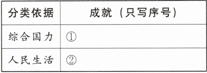 (1)请你根据下表中的分类依据,对上述成就进行分类。