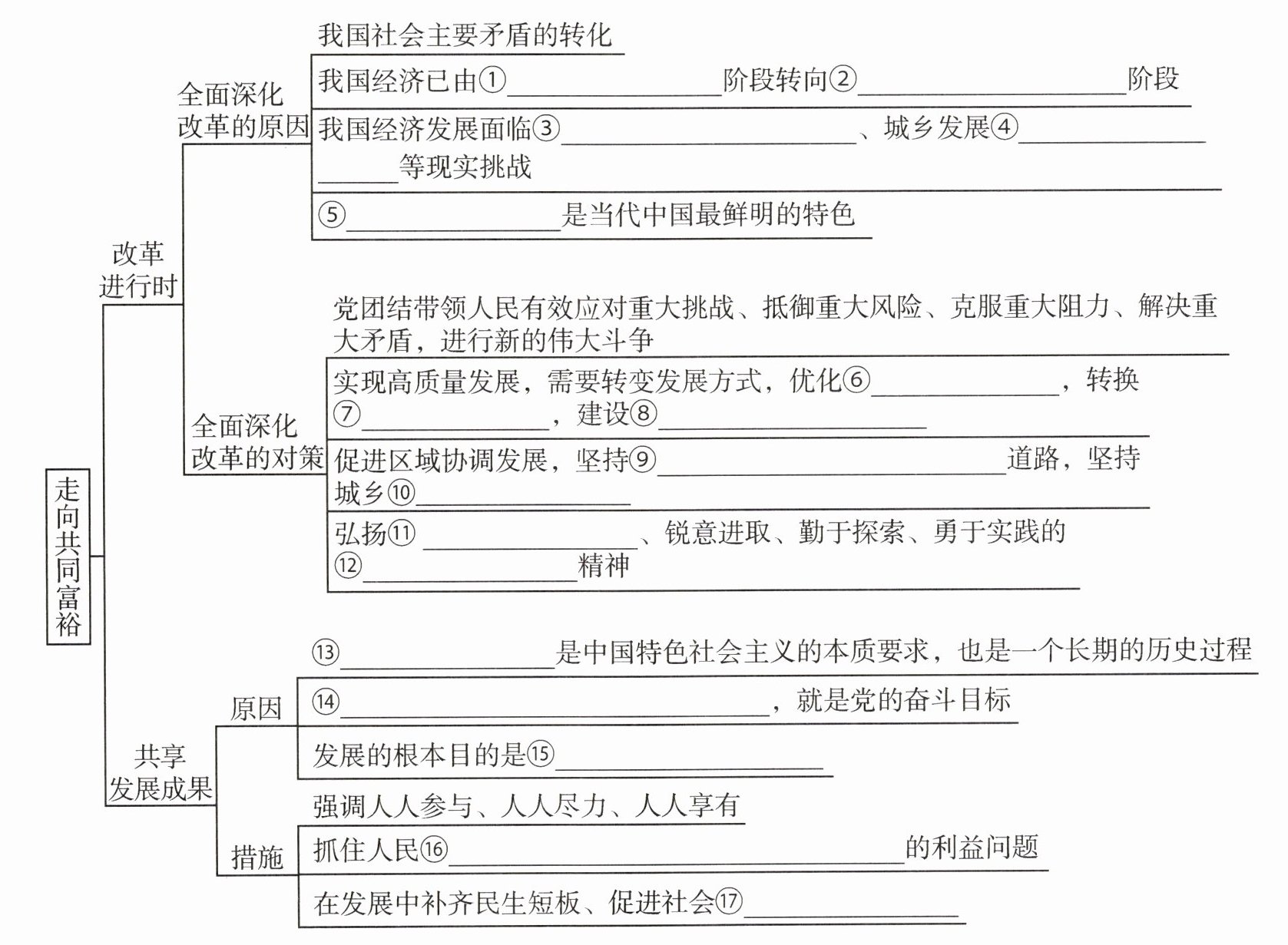 促进区域协调发展,坚持⑨________道路,坚持城乡⑩________
