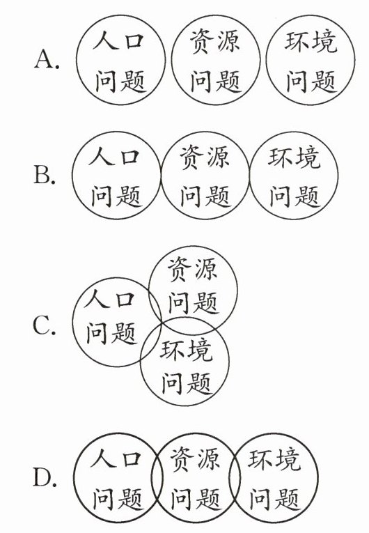 8. 下列关于人口问题、资源问题、环境问题相互关系的示意图,正确的是(