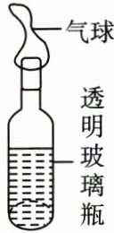 9. 右图,在一个装有约 3/5 容积温开水的透明玻璃瓶中,加入 20 克葡萄糖和适量的酵母,振荡后再在瓶口套一个挤瘪了的小气球,放在温暖的地方。几天后,将会发现(