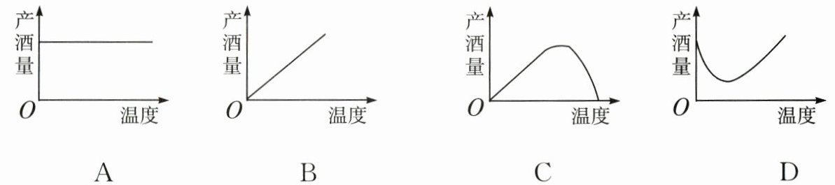 14. 以下能正确反映酵母菌发酵时,产酒量随温度变化的曲线是(