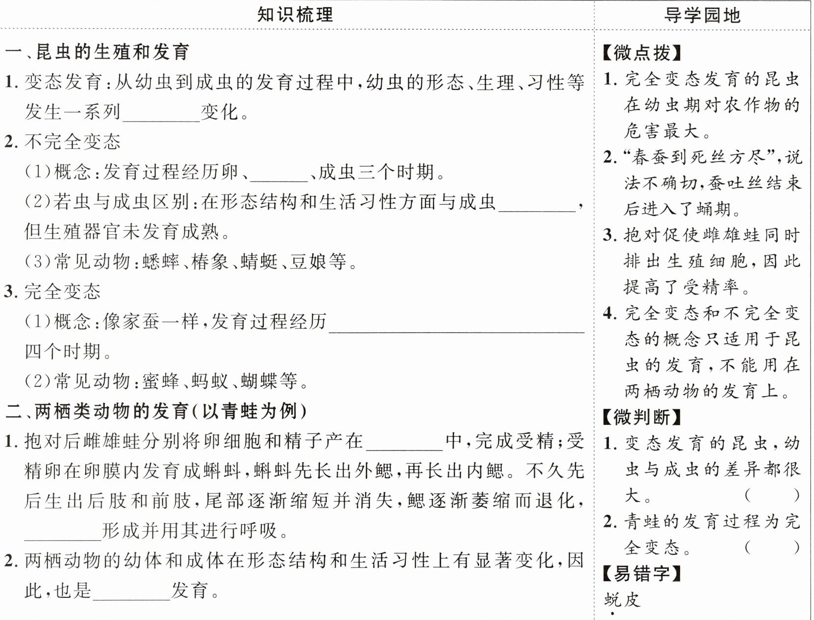 )2. 青蛙的发育过程为完全变态。(