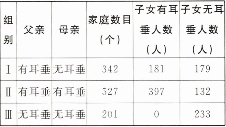 。(5)在第Ⅱ组家庭中的一对夫妇,生的第一个孩子无耳垂,该夫妇再生一个孩子有耳垂的概率是