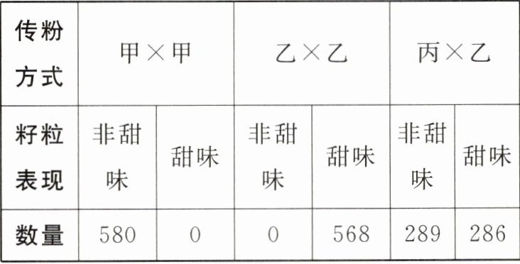 ,丙自花传粉的果穗上所结籽粒味道是甜味和非甜味
