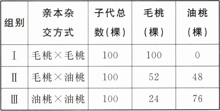 14. 果农为了得到优良品种,将毛桃和油桃进行了杂交实验(显性基因为$R$,隐性基因为$r$),所得数据如下表。第Ⅱ组亲本的基因型是(
