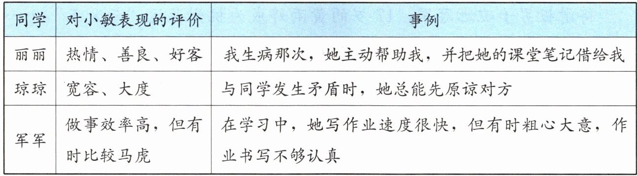 材料一:小敏为了更好地了解自己,征求了几位同学对自己的评价,结果如下表所示。