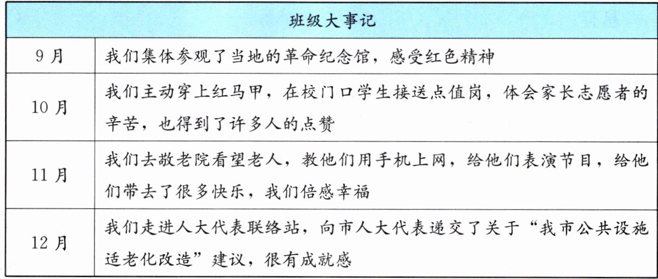 (1)请为该班的本学期班级大事设计一个宣传活动。(2分)