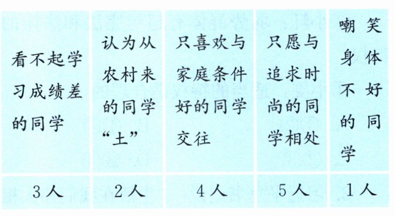 11. 某校八年级(2)班组织了一次关于“中学生中存在的歧视他人状况”的调查活动,请你参与其中,完成下列任务。