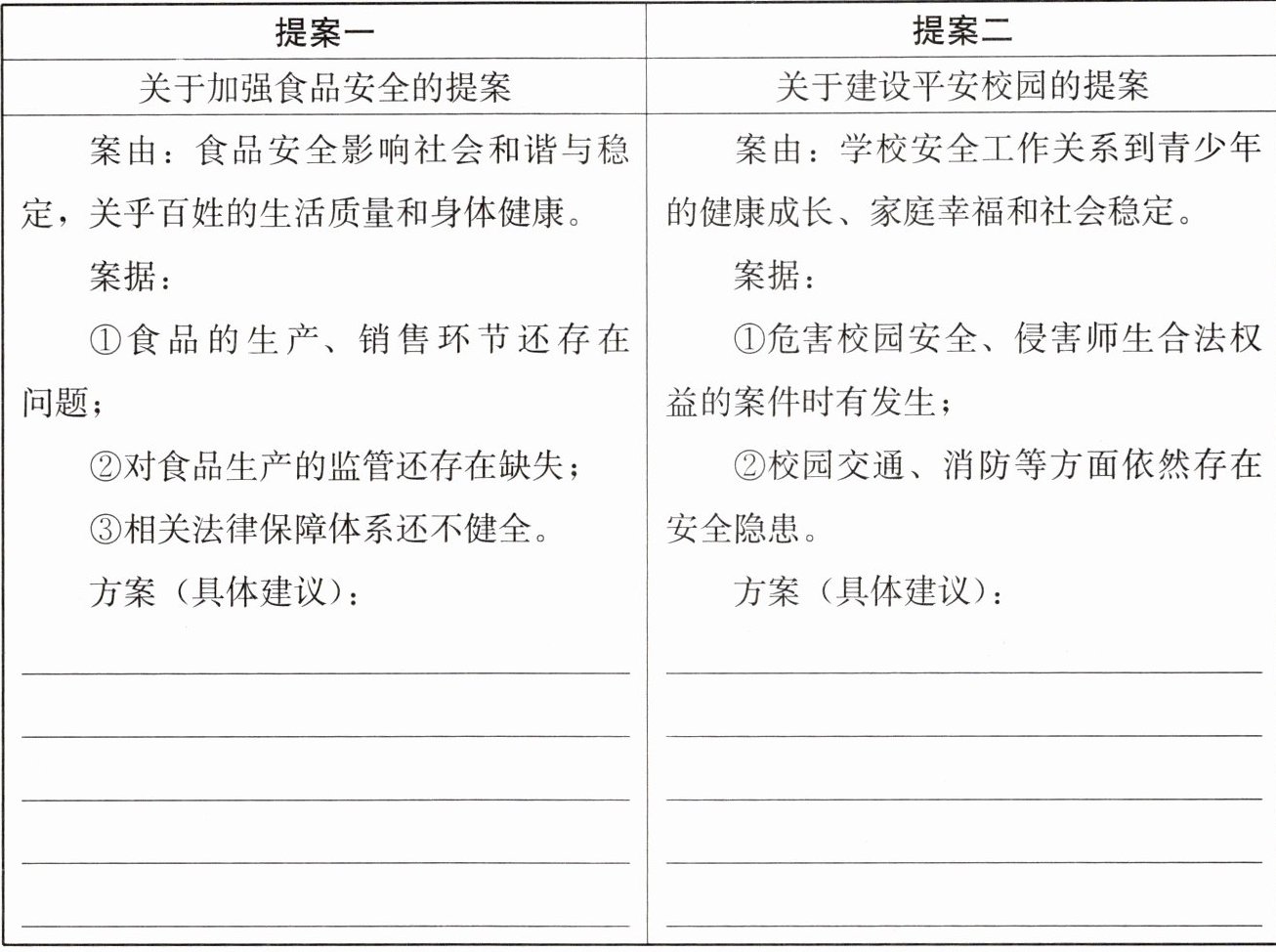 在班会活动中,同学们纷纷表达了自己对参与民主生活的看法。小鄱所在的小组拟提出如下两个提案。