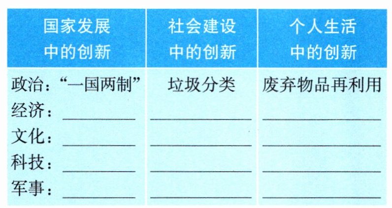 (1)请你分别列举出 1~2 项国家发展、社会建设和个人生活中的创新成就(成果)。