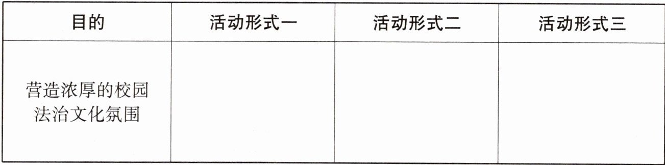 (4)学校打算开展校园法治文化宣传活动,请你设计一些主题活动,营造浓厚的校园法治文化氛围。(6 分)