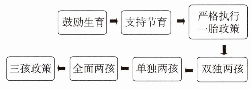 材料二 课堂上,老师出示了我国人口政策演变历程的图示,同学们就此展开了讨论。