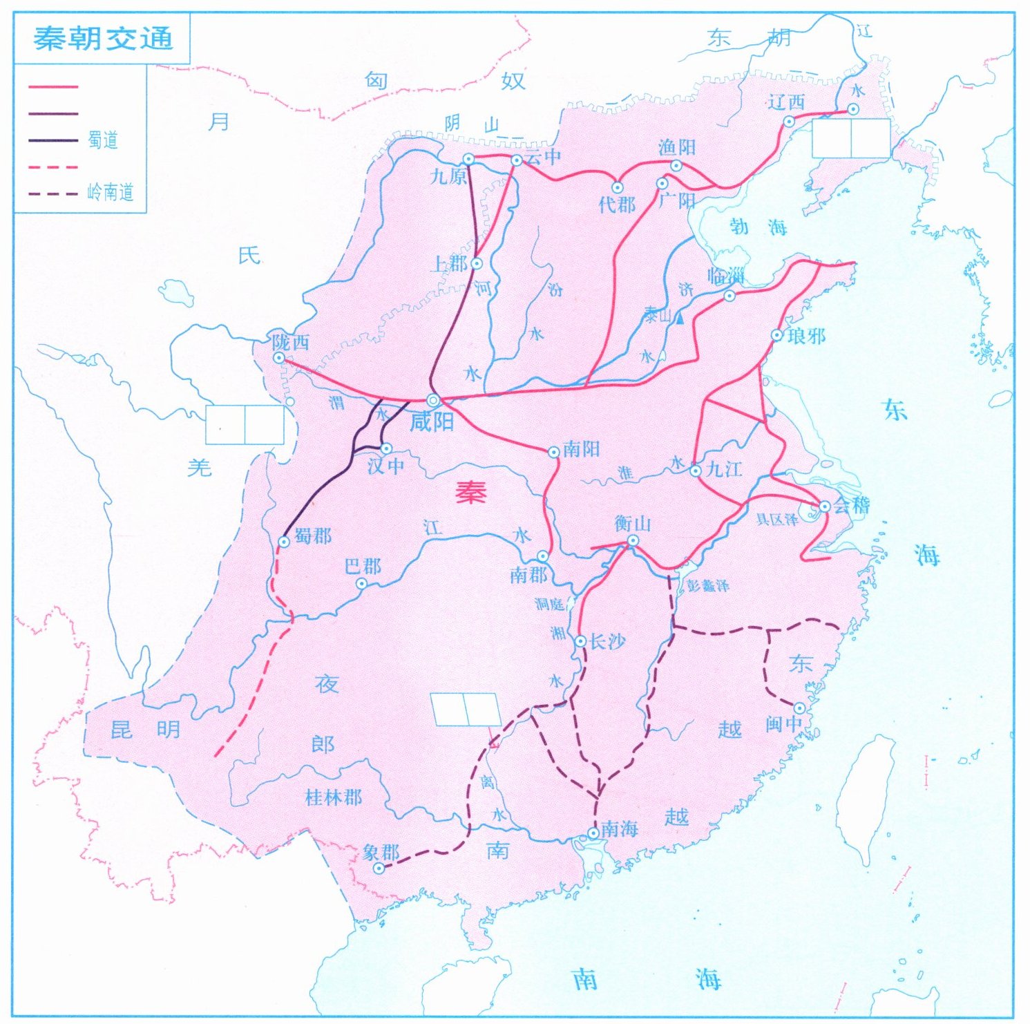 1. 秦朝建立后,陆续修建了以咸阳为中心的道路交通网:驰道向东北直达燕齐、向南直达吴楚地区;直道从咸阳通至九原;五尺道北起蜀郡、南通滇池地区。据此,将地图中的图例补全。