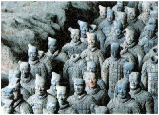 3. 右图是被称为“世界第八大奇迹”的秦兵马俑。它位于图1中的_____处(填写数字序号)。它的宏伟壮观,主要基于秦朝( )