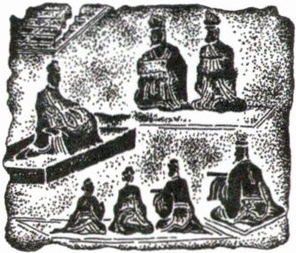 1. 右图为四川省成都市出土的汉代讲经画像砖(拓片)。其中教师讲学所用教材可能是______(填写对应的数字序号)。你的判断依据是______。