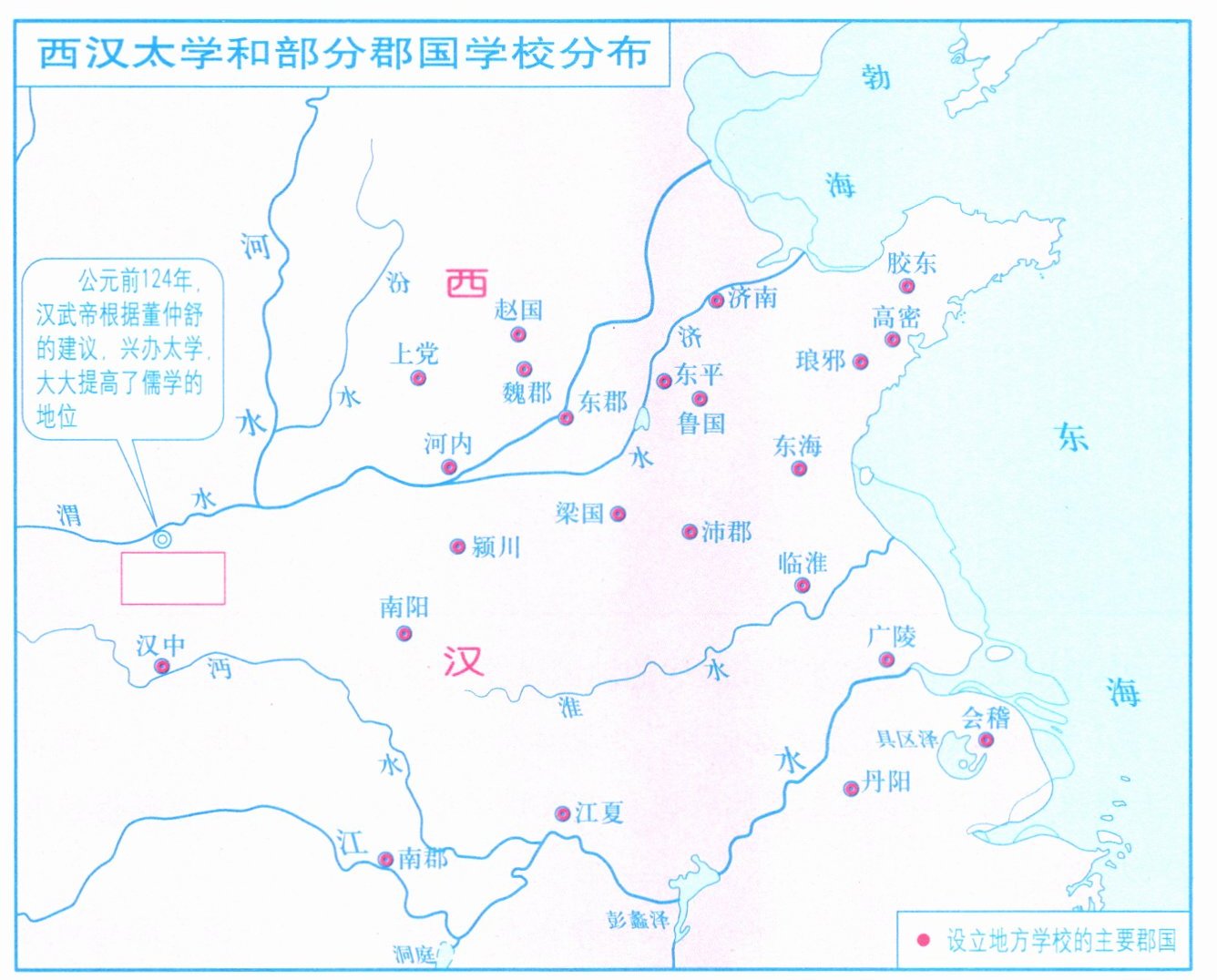 2. 在图中□内填出西汉太学设立的地点。地方学校主要分布于______。