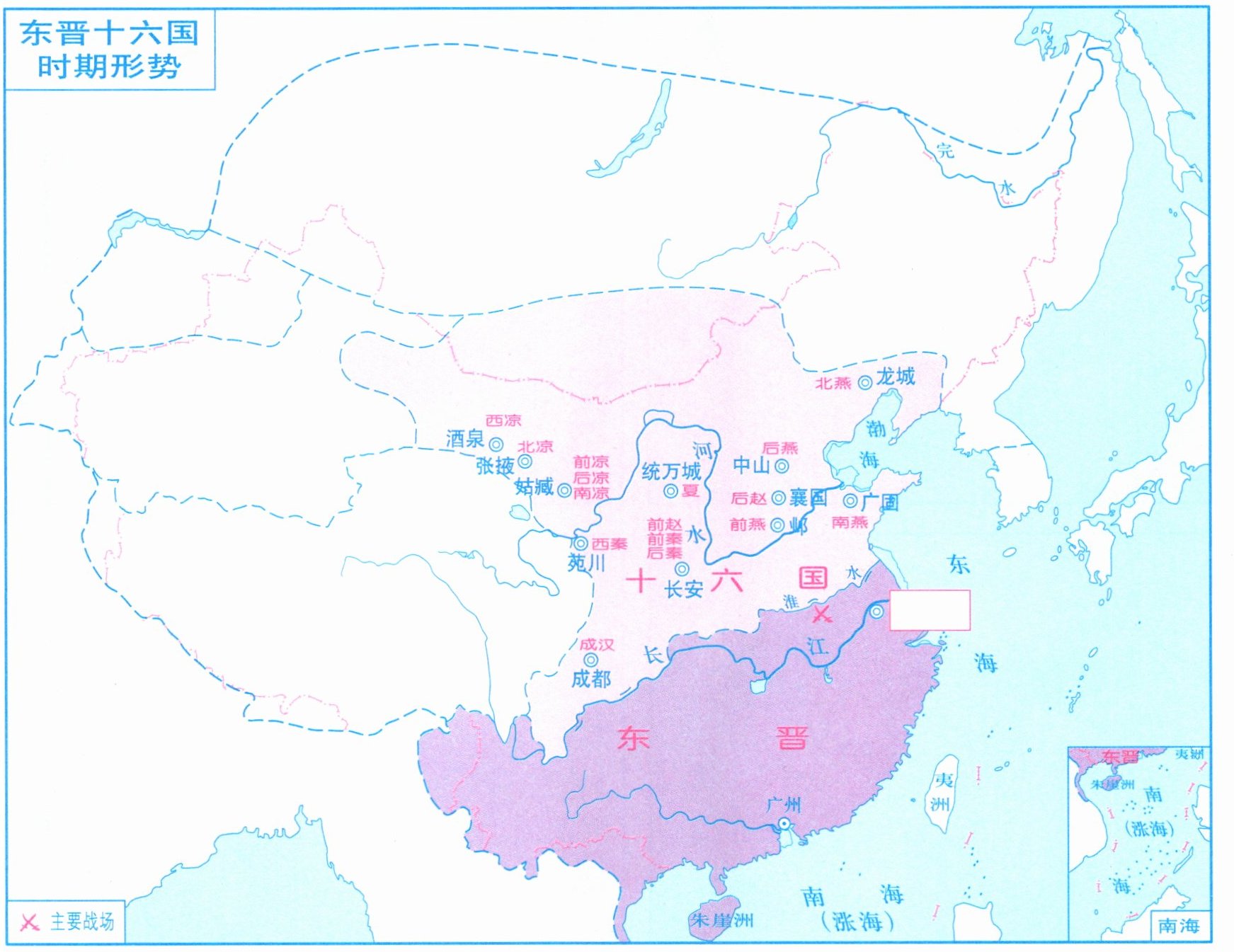 1. 317 年,镇守长江下游的皇族____重建晋王朝,史称____。在图中□内填出其都城名称。
