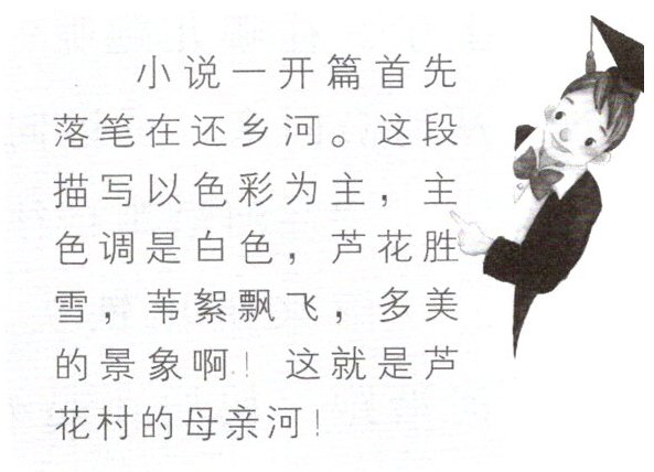 晋察冀边区的北部有一道还乡河,河里长着很多芦苇。河边有个小村庄。芦花开的时候,远远望去,碧绿的芦苇上像盖了一层厚厚的白雪。风一吹,鹅毛般的苇絮就飘飘悠悠地飞起来,把这几十家小房屋都罩在柔软的芦花里。因此,这村就叫芦花村。十二岁的儿童雨来就是这村里的。