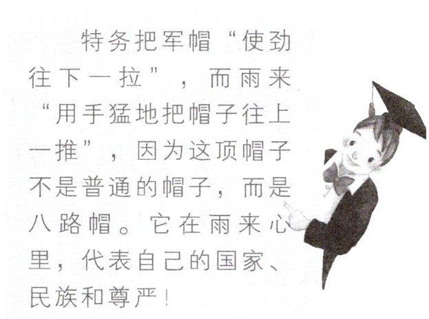 特务把军帽“使劲往下一拉”,而雨来“用手猛地把帽子往上一推”,因为这顶帽子不是普通的帽子,而是八路帽。它在雨来心里,代表自己的国家、民族和尊严!
