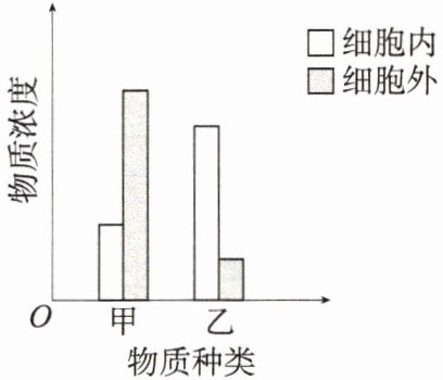 【例1】甲、乙两种小分子物质在细胞内外的浓度情况如图所示,在进行跨膜运输时,下列说法正确的是(