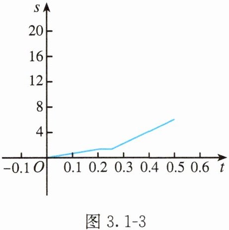 分析:这位同学在去学校的途中有三种不同的运动状态,因此 $ v $ 和 $ s $ 关于 $ t $ 的函数均需要分段表述.