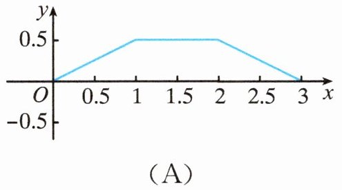 1. 如图,点$P$在边长为$1$的正方形$ABCD$的边上沿着$B→C→D→A$运动. 设点$P$经过的路程为$x$,$\triangle ABP$的面积为$y$,则$y$关于$x$的函数的图象形状大致是(